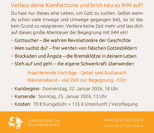 • 22.-25.01.2026 Männerseminar: Auf der Suche nach Gott